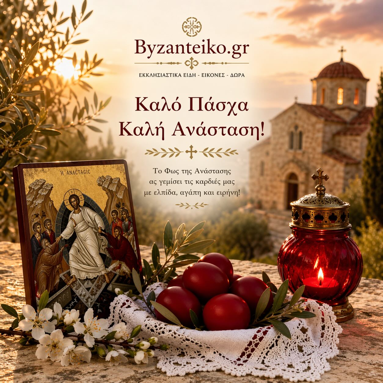 Στους πρόποδες των Μετεώρων, στα ευλογημένα Τρίκαλα, βρίσκεται το φυσικό μας κατάστημα – ένας χώρος αφιερωμένος στην ορθόδοξη παράδοση και τέχνη. Ανταποκρινόμενοι στη μεγάλη ζήτηση και την αγάπη του κόσμου από κάθε γωνιά της Ελλάδας, δημιουργήσαμε το ηλεκτρονικό μας κατάστημα “ΒΥΖΑΝΤΕΙΚΟ”, για να φέρουμε σε κάθε σπίτι την πνευματικότητα και την ομορφιά της ορθόδοξης πίστης.