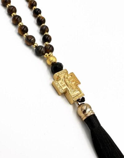Βραχιόλι καφέ μακραμέ με χρυσό σταυρό