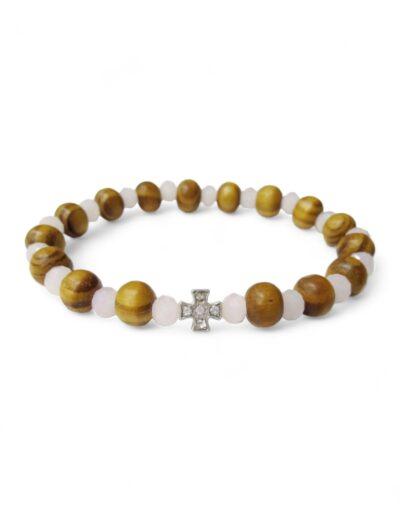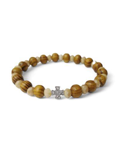 Βραχιόλι ξύλινο με σταυρό αιματίτη