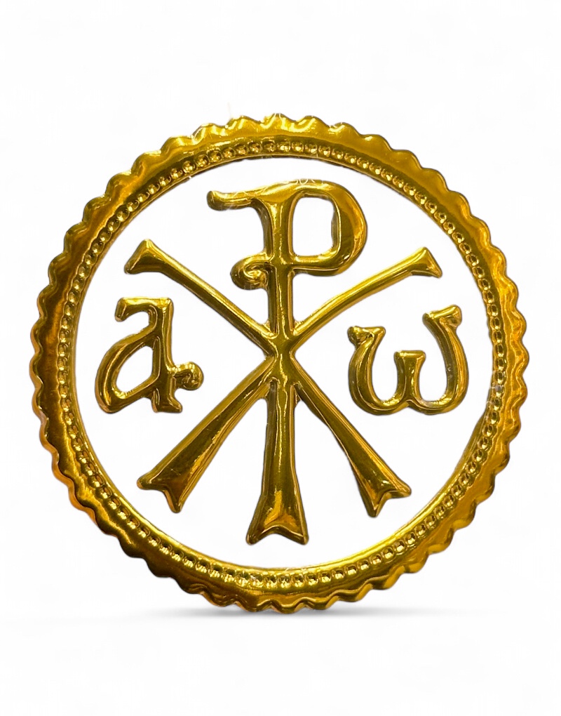 Ένα κομψό και ιερό σύμβολο πίστης, το στρογγυλό σμάλτινο αυτοκόλλητο με το χριστόγραμμα αποτελεί υπέροχη επιλογή για όσους θέλουν να εκφράζουν τη χριστιανική τους πίστη στην καθημερινότητά τους.