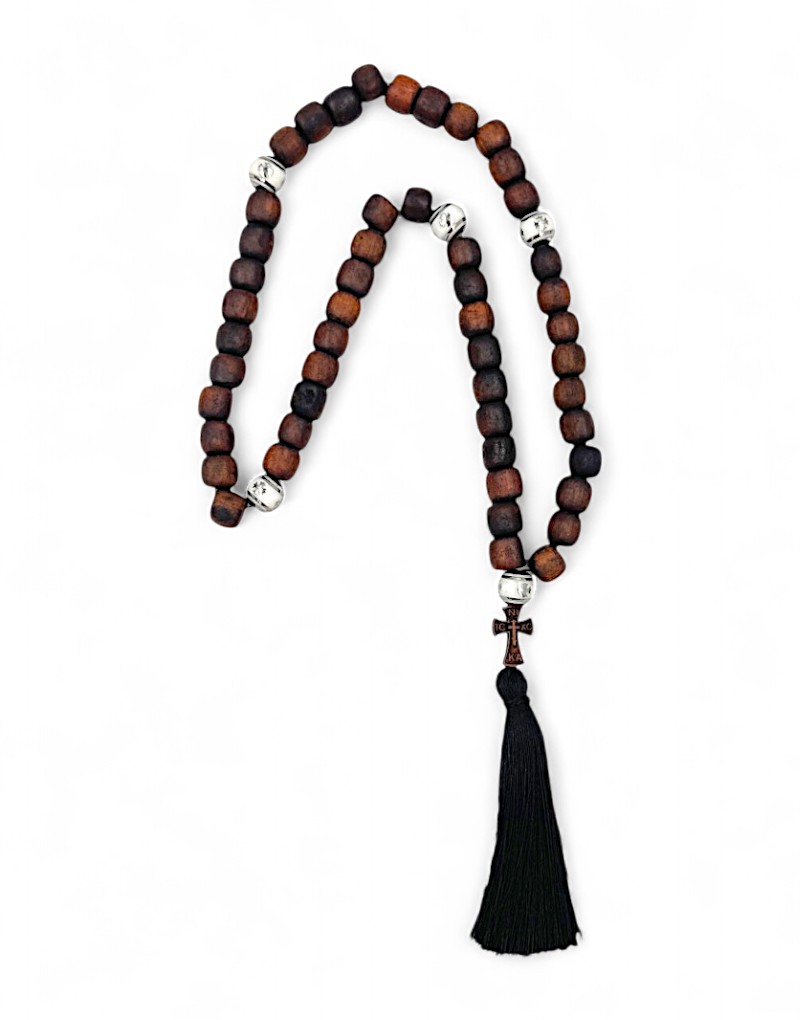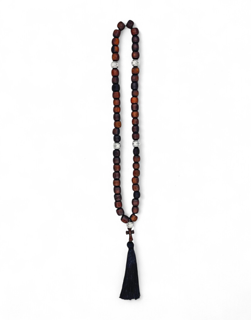 Ένα αυθεντικό αγιορείτικο κομποσχοίνι με 50 ξύλινες χάντρες, ξύλινο σταυρό και φούντα στο τελείωμα, φτιαγμένο με φροντίδα και παραδοσιακή τεχνική. Κατάλληλο για να κρεμιέται στο αυτοκίνητο, στο σπίτι, ή όπου αλλού επιθυμείτε.