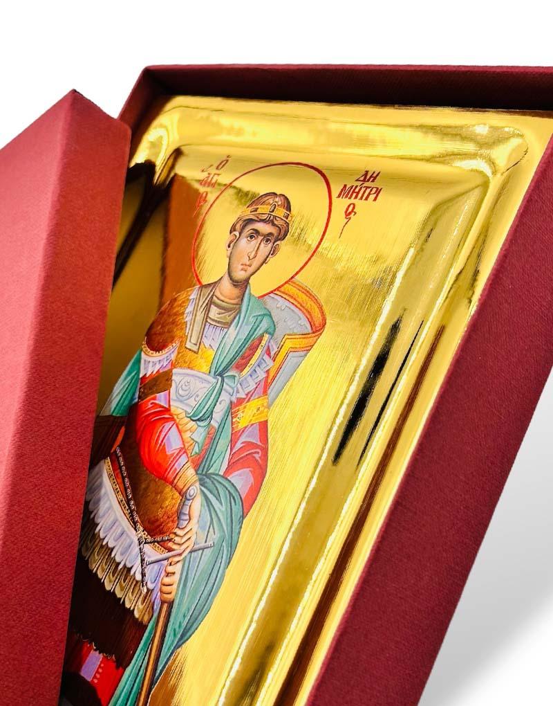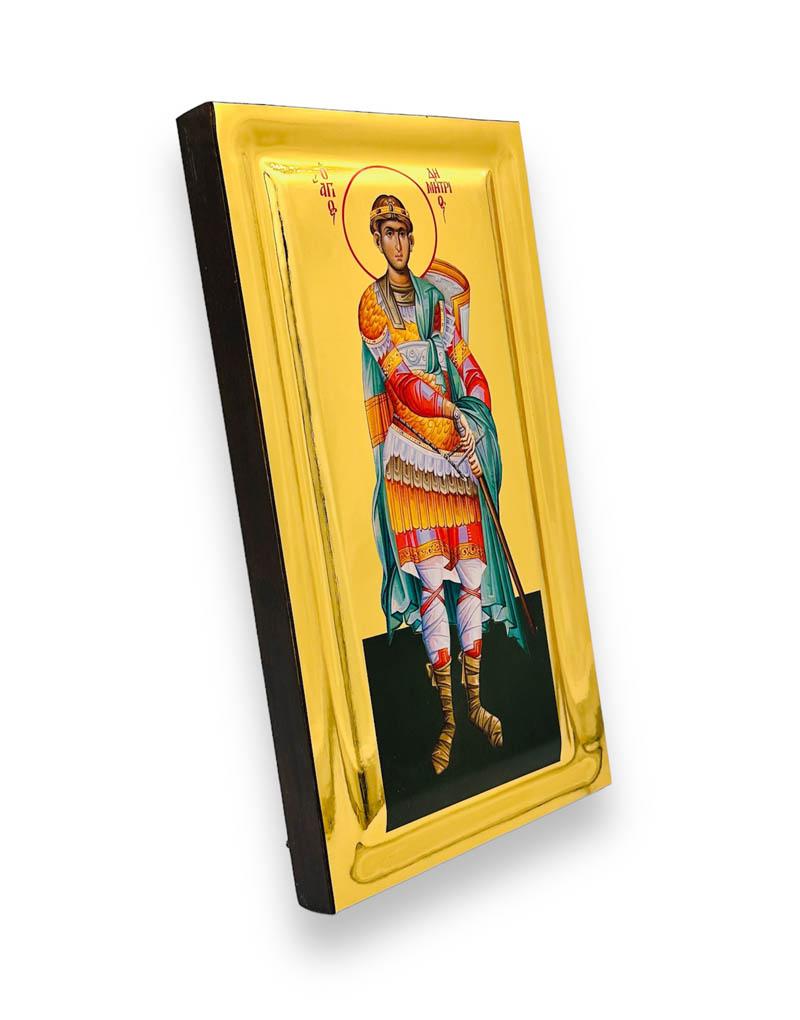 Ο Άγιος Δημήτριος σε μια μοναδική χειροποίητη εικόνα με όψη στιλβωτού.
