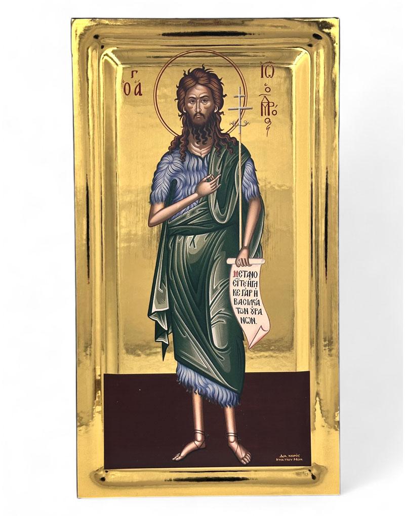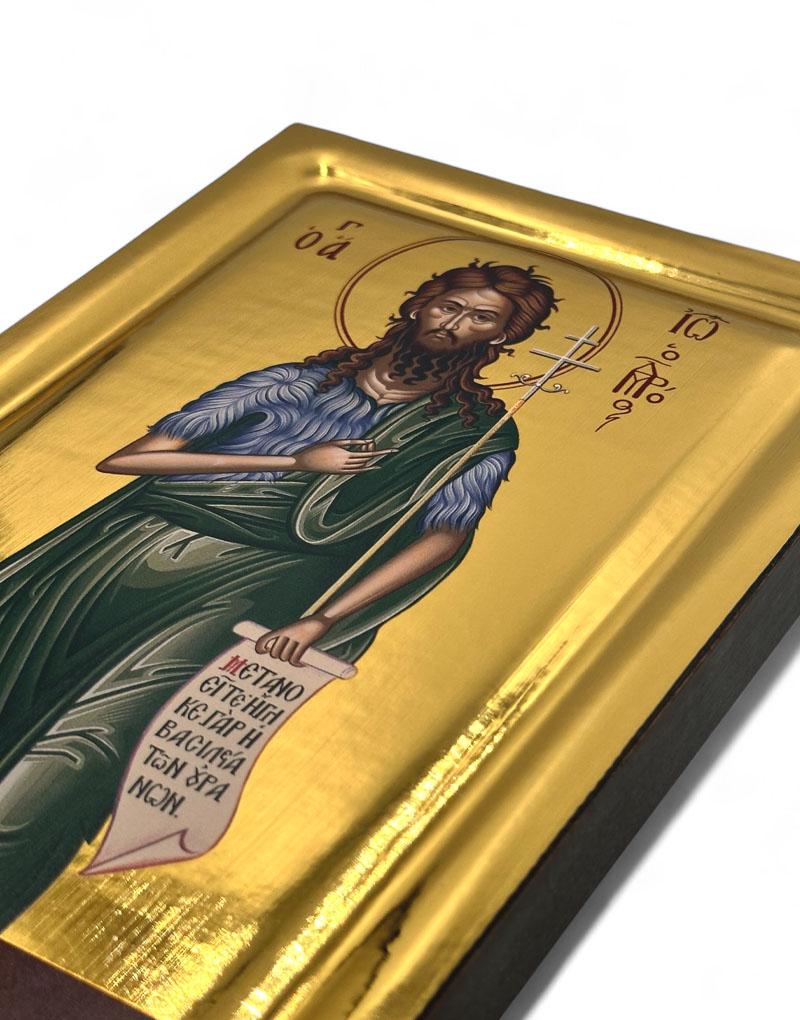 Ο Άγιος Ιωάννης ο Πρόδρομος και Βαπτιστής σε μια μοναδική χειροποίητη εικόνα με όψη στιλβωτού.