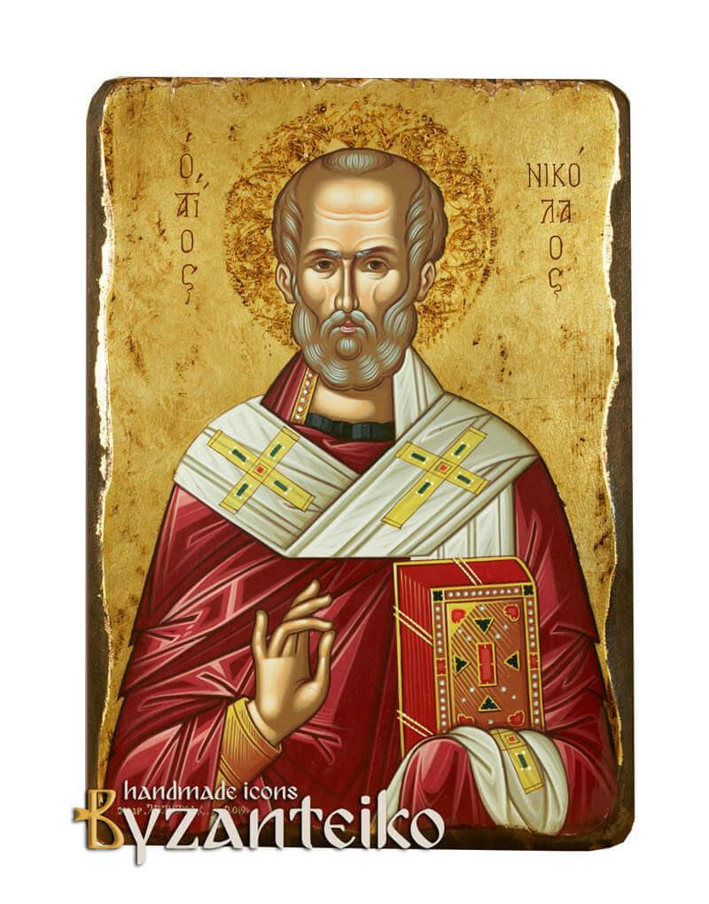 Μοναδική αγιογραφία σε ξύλο που απεικονίζει τον Άγιο Νικόλαο.