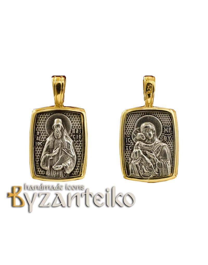 Στο μπροστινό μέρος απεικονίζεται ο Άγιος Παΐσιος και στο πίσω μέρος η Παναγία.
