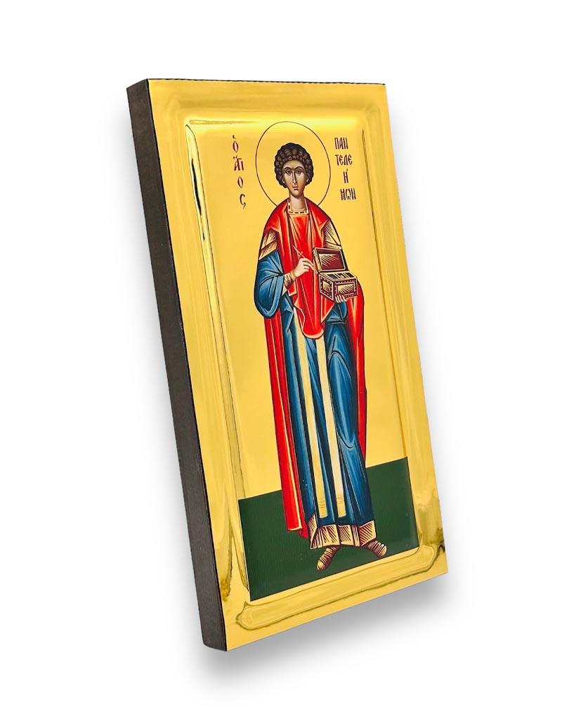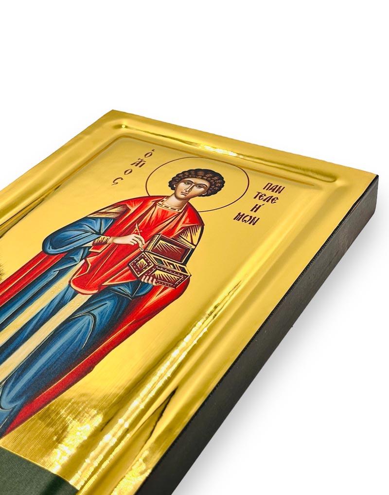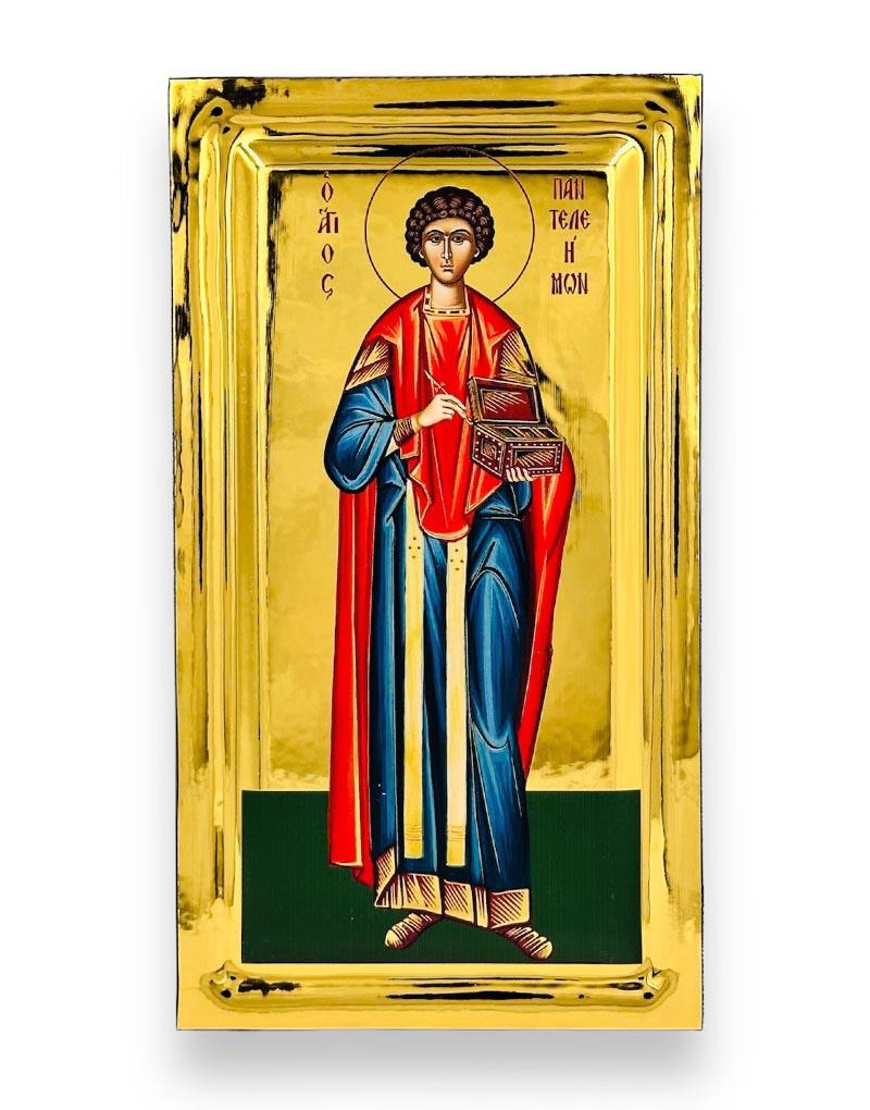 Ο Άγιος Παντελεήμων σε μια μοναδική χειροποίητη εικόνα με όψη στιλβωτού.