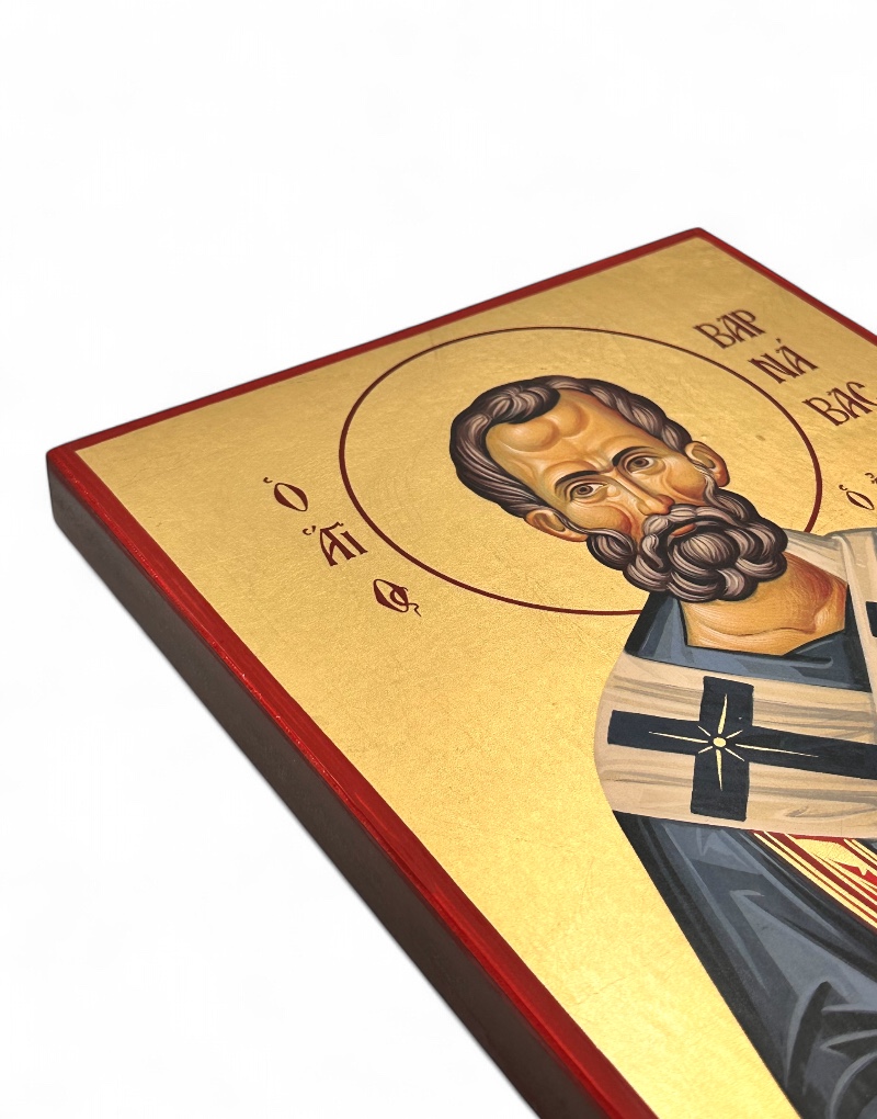 Ο Άγιος Βαρνάβας ο Απόστολος σε μια μοναδική χειροποίητη επίπεδη εικόνα μεταξοτυπίας εκτυπωμένη πάνω σε επιχρυσωμένο καμβά.