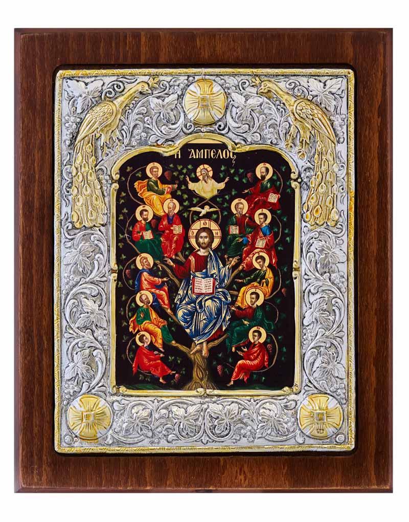 Με αυτήν την εικόνα παρουσιάζεται η σχέση του Χριστού με τους πιστούς. Από Αυτόν τρέφονται και με την δική Του δύναμη καρποφορούν. Κανένα κλήμα δεν μπορεί να δώσει καρπό, αν δεν είναι συνδεδεμένο μαζί Του. «Εγώ ειμί η άμπελος υμείς τα κλήματα. Ο μένων εν εμοί καγώ εν αυτώ, ούτος φέρει καρπόν πολύν, ότι χωρίς εμού ου δύνασθε ποιείν ουδέν». Το σύμβολο της αμπέλου φανερώνει την Εκκλησία, η οποία, με πρώτους βλαστούς τους Αγ. Αποστόλους, αυξάνει Κι εξαπλώνεται παντού και ζωοποιεί τα πάντα, γιατί μένει πάντα ενωμένη με το Χριστό.