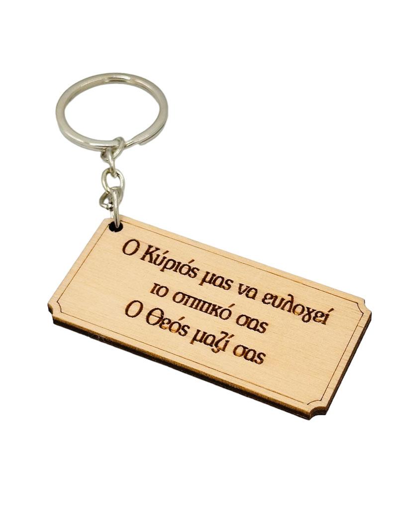 Μπρελόκ ξύλινο “Ο Κύριος μας να ευλογεί το σπιτικό σας”