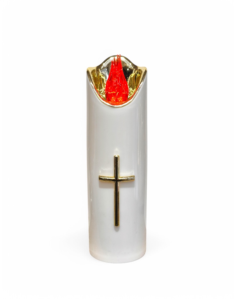 Electric Candle White with Gold Cross & Red Flame 5*17cm | Cortina