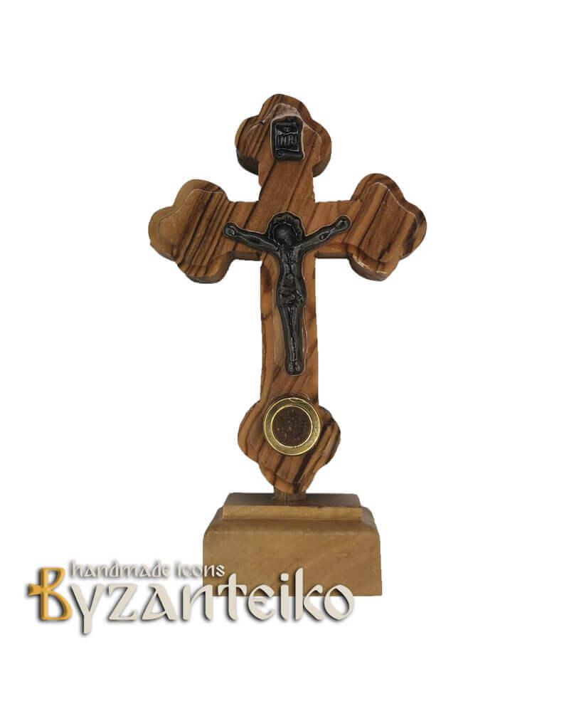 Σταυρός επιτραπέζιος από ξύλο ελιάς, που κατασκευάζεται στα Ιεροσόλυμα και διαθέτει ειδική οπή επάνω στον σταυρό που φέρει χώμα από τους Αγίους Τόπους.