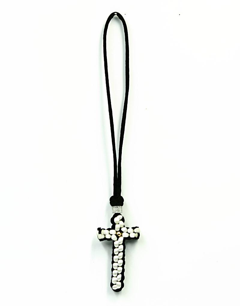Φυλαχτό Κρεμαστό αυτοκινήτου με σταυρό πλεκτό ασπρόμαυρο