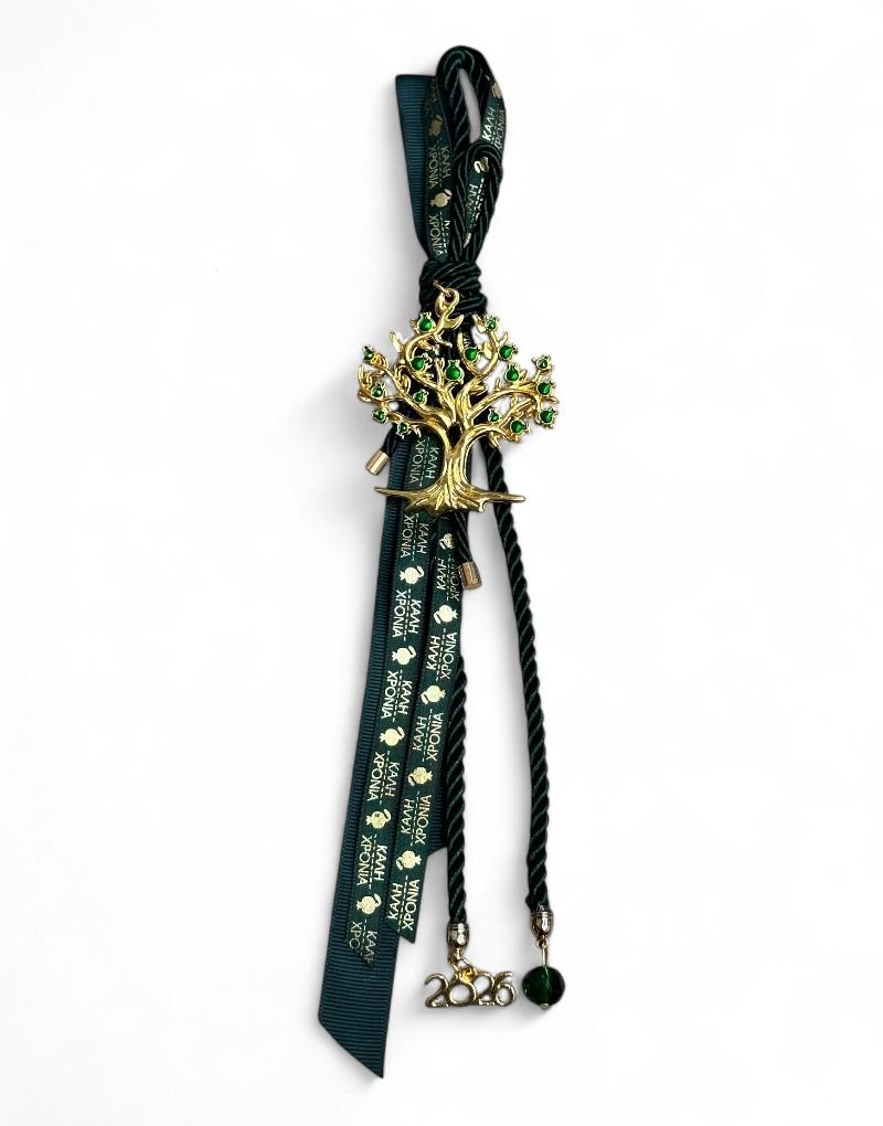 Καλωσορίστε τη νέα χρονιά με ένα εντυπωσιακό γούρι 2026 σε κομψό πράσινο χρώμα, διακοσμημένο με ένα λαμπερό δέντρο στολισμένο με πράσινα στρας που συμβολίζει την ανάπτυξη, τη γονιμότητα και τη θετική ενέργεια. Οι λεπτομέρειες του σχεδιασμού και το ποιοτικό κορδόνι προσθέτουν μια αίσθηση πολυτέλειας και φυσικής αρμονίας.
