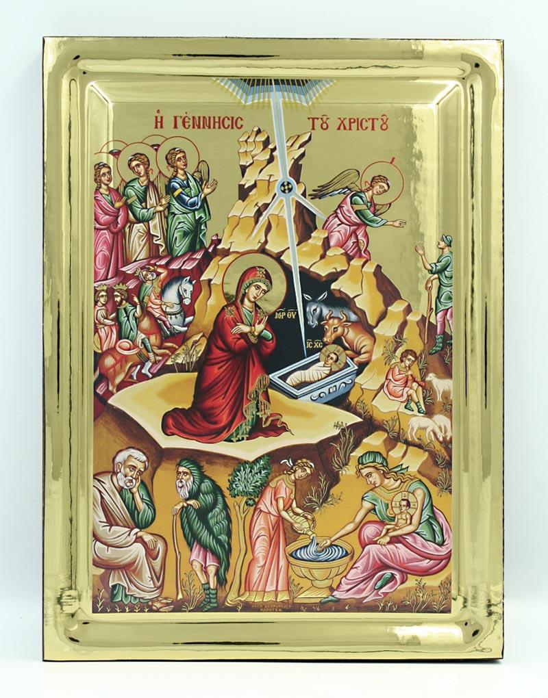 Η Γέννηση του Ιησού Χριστού σε μια μοναδική χειροποίητη εικόνα με “εφέ” στιλβωτού.