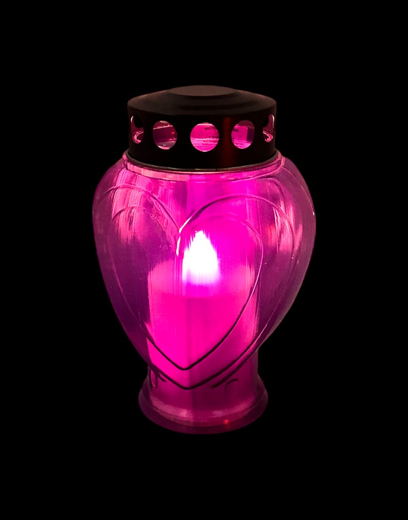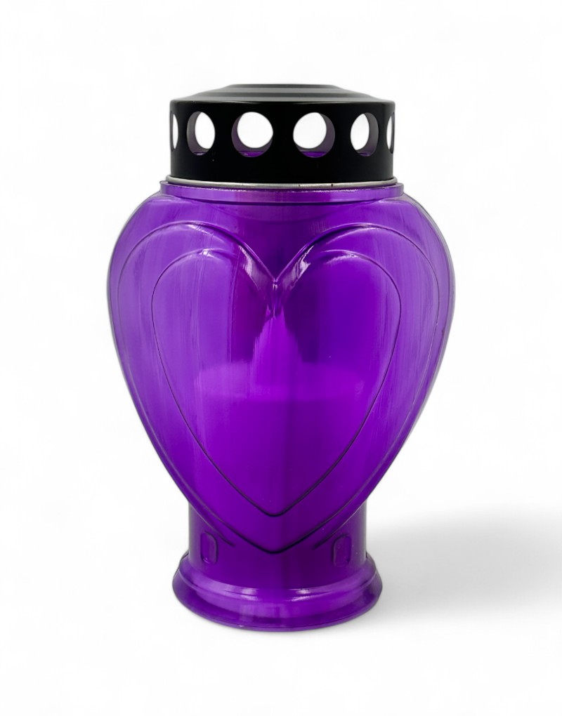 Αποδώστε φόρο τιμής με σεβασμό και αγάπη με αυτό το ηλεκτρικό κερί αφιέρωσης σε κομψό σχήμα καρδιάς και μοναδικό μωβ χρώμα. Ιδανικό για τάφους, μνημόσυνα, ή κάθε στιγμή μνήμης και αφιέρωσης. Περιλαμβάνει μπαταρίες και διαθέτει διακόπτη On/Off για ευκολία στη χρήση και εξοικονόμηση ενέργειας.