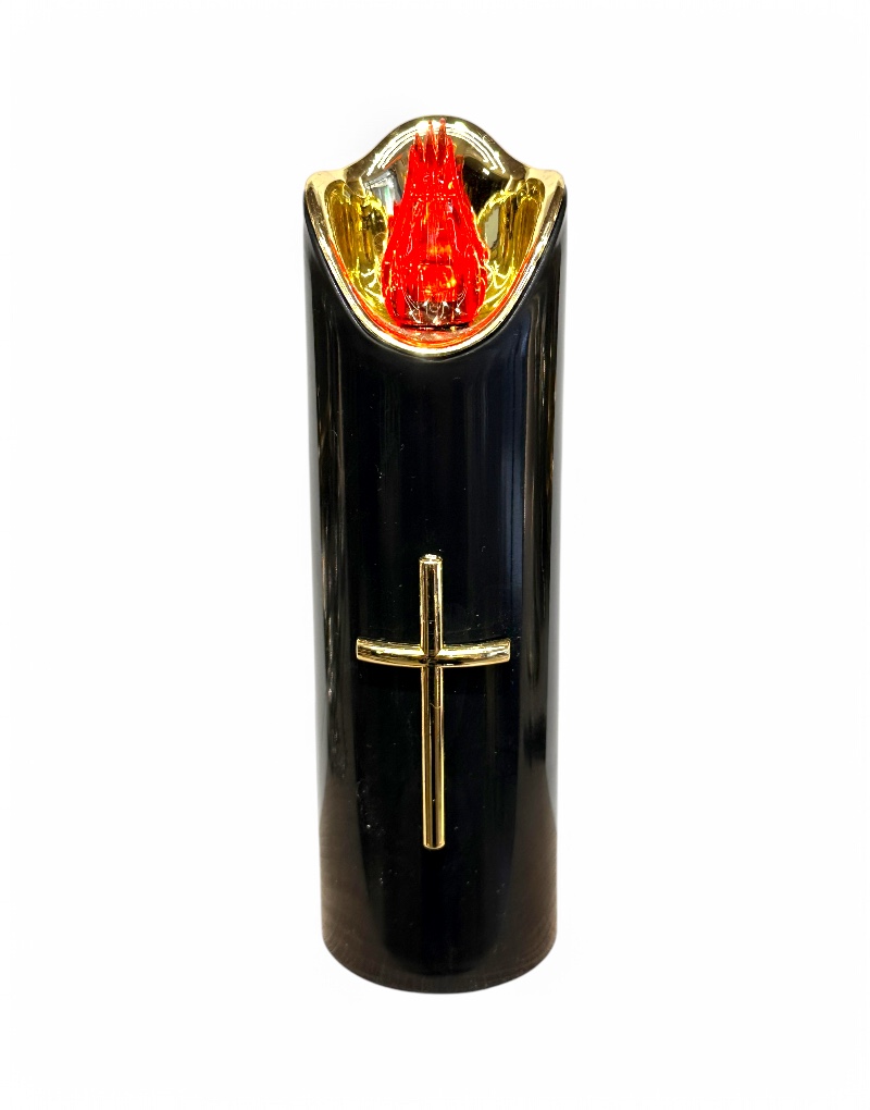 Ηλεκτρικό Κερί Μαύρο με Χρυσό Σταυρό & Κόκκινη Φλόγα 5*17cm | Cortina