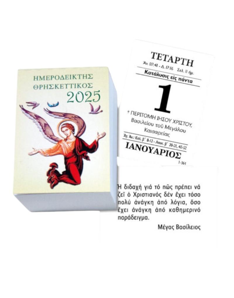 Ημεροδείκτης 2025 θρησκευτικός μικρός ημερήσιος ανοιγόμενος.