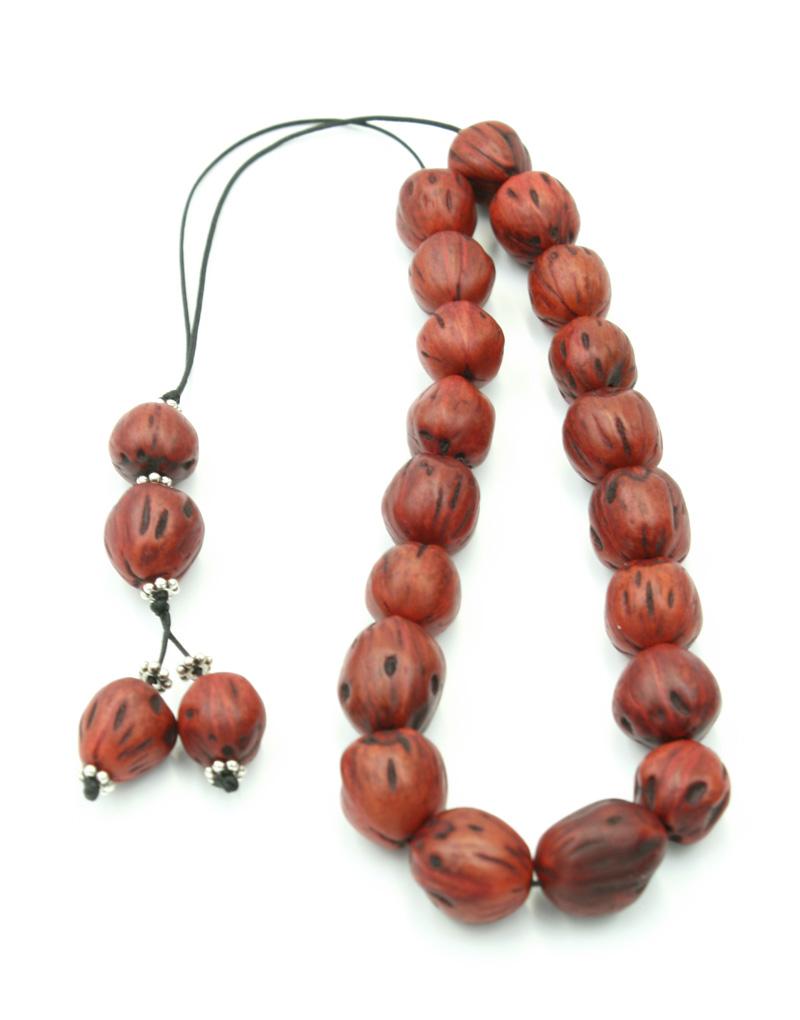 Κομπολόι αρωματικό από χάντρες μοσχοκάρυδου σε κόκκινο χρώμα.
