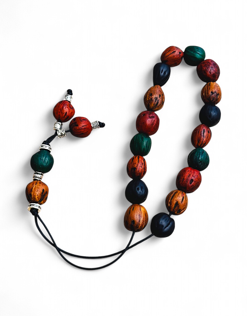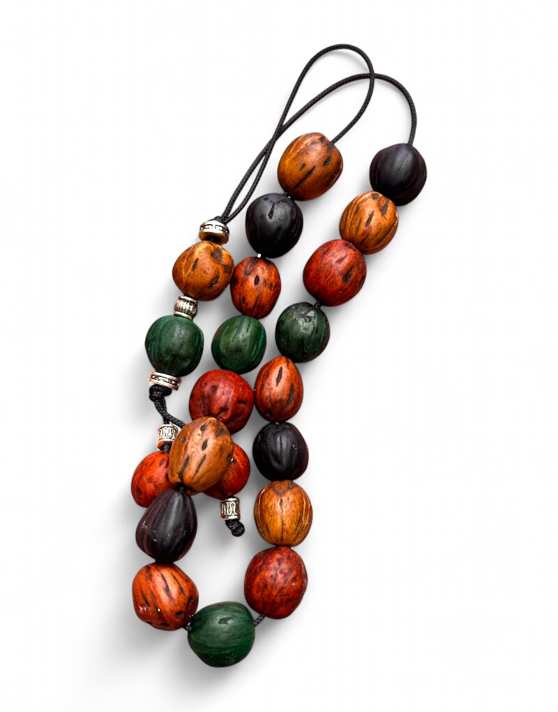 Κομπολόι αρωματικό με πολύχρωμες χάντρες μοσχοκάρυδου.