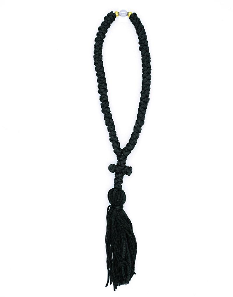 Κομποσχοίνι 50άρι φλος μαύρο με λευκή χάντρα. Κατασκευάζεται στο Άγιο Όρος από μοναχούς. Αποστολή Ελλάδα και εξωτερικό.