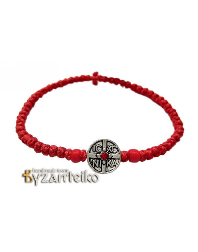 Κομποσχοίνι κερωμένο 63 κόμπων , χρώματος κόκκινο με μεταλλικό Ιησούς Χριστός Νικά
