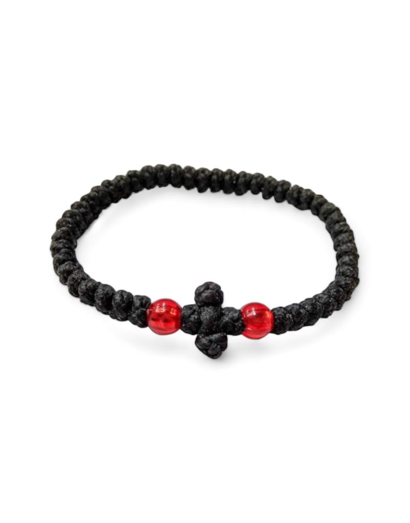 Κομποσχοίνι κερωμένο, χρώματος μαύρο με κόκκινη χάντρα.