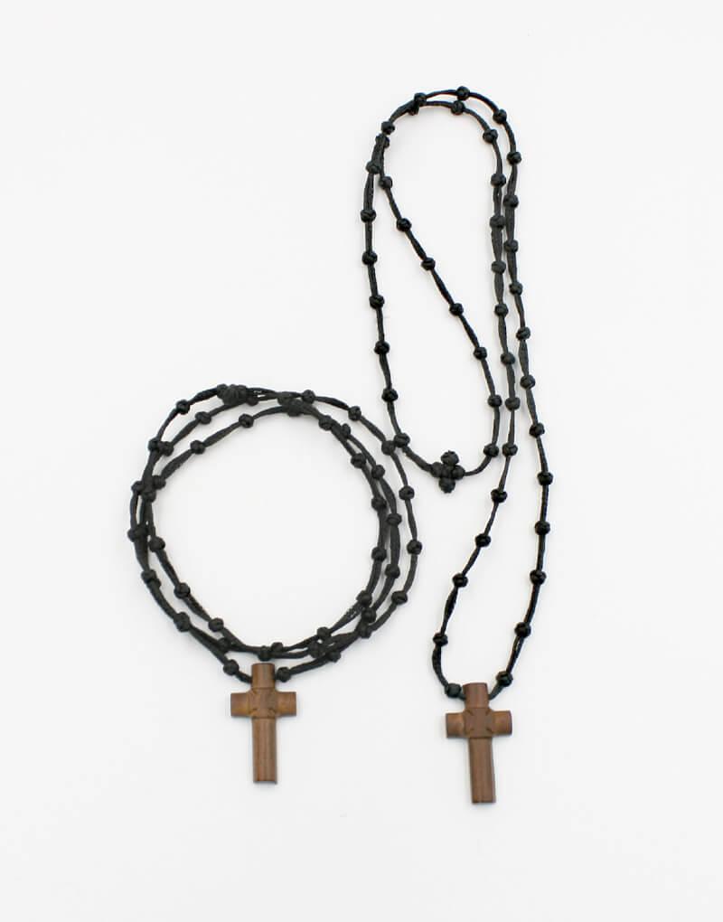 Κομποσχοίνι λαιμού κερωμένο 33άρι με αραιούς κόμπους και ξύλινο σταυρό.