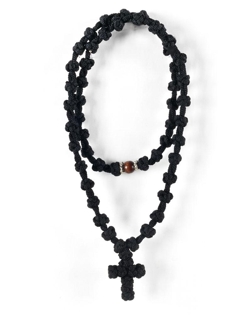 Κομποσχοίνι λαιμού με 33 αραιούς κόμπους και ξύλινη χάντρα.