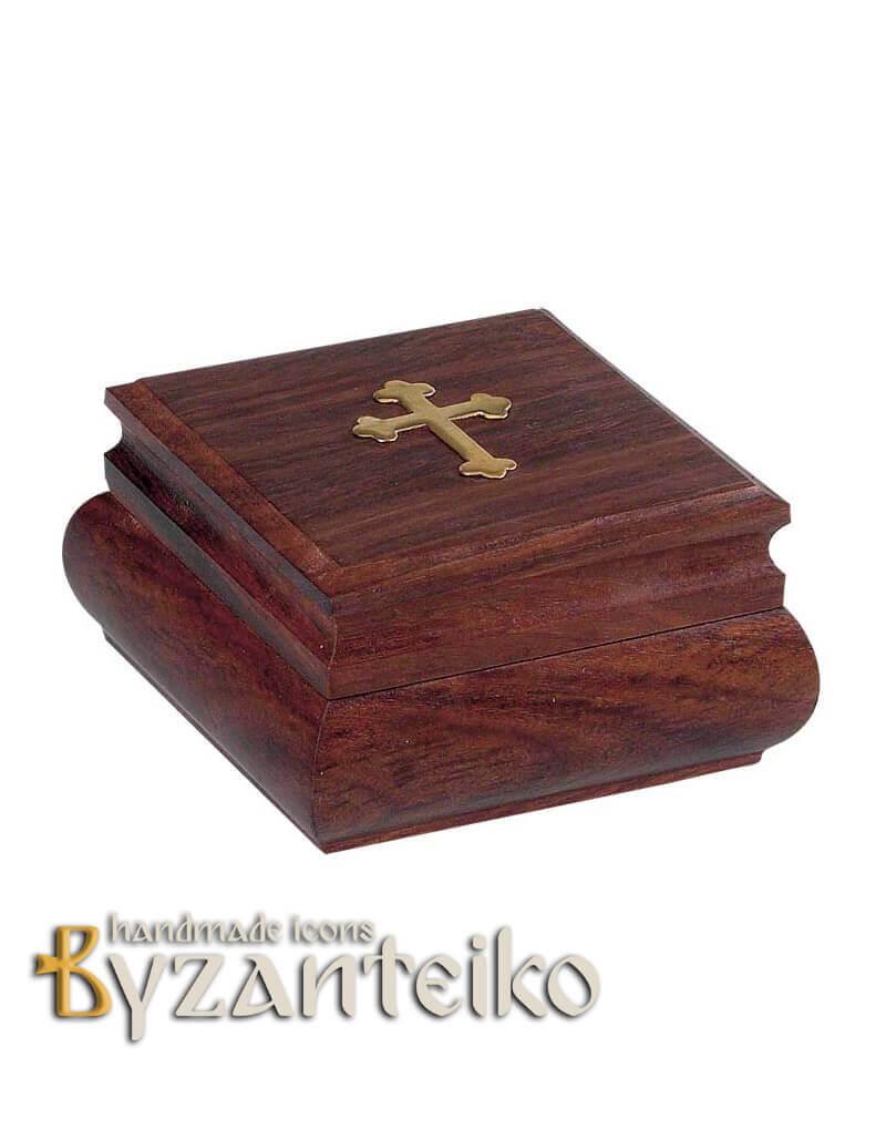 Κουτί ξύλινο τετράγωνο με μπρούτζινο σταυρό.