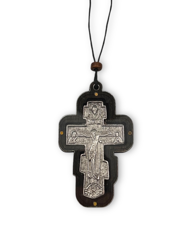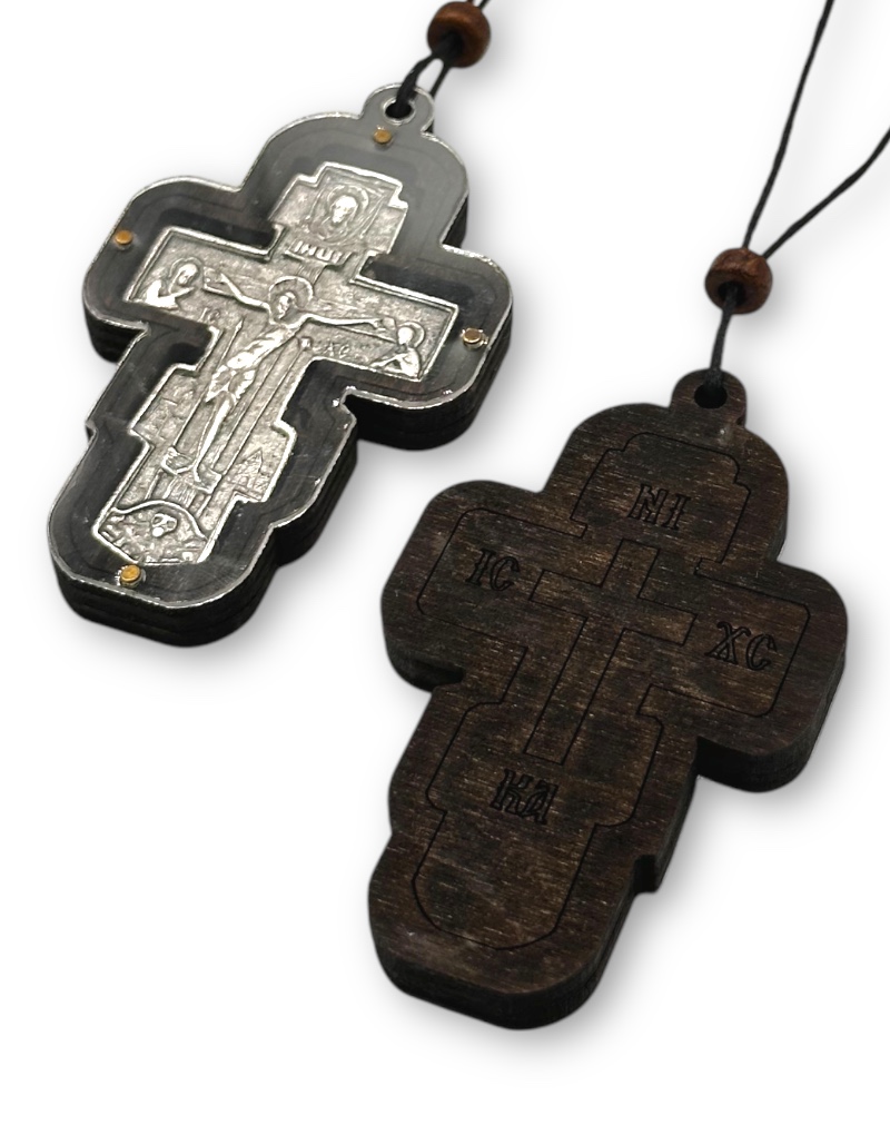 Ξύλινος κρεμαστός σταυρός αυτοκινήτου με plexiglass, εσωτερικά διακοσμημένος με επαργυρωμένη εικόνα του Εσταυρωμένου. Στο πίσω μέρος φέρει σκαλισμένη την επιγραφή ICXC NIKA, το σύμβολο της νίκης του Χριστού. Ένα μοναδικό φυλαχτό που προσφέρει πνευματική προστασία και ευλογία σε κάθε διαδρομή. Ιδανικό για ανάρτηση στον καθρέφτη του αυτοκινήτου, αποτελεί ένα εξαιρετικό δώρο για κάθε πιστό.