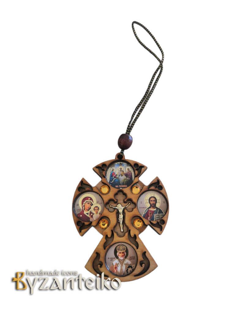 Κρεμαστός σταυρός αυτοκινήτου ξύλινος. Διαστάσεις: 9*6,5 εκατοστά.