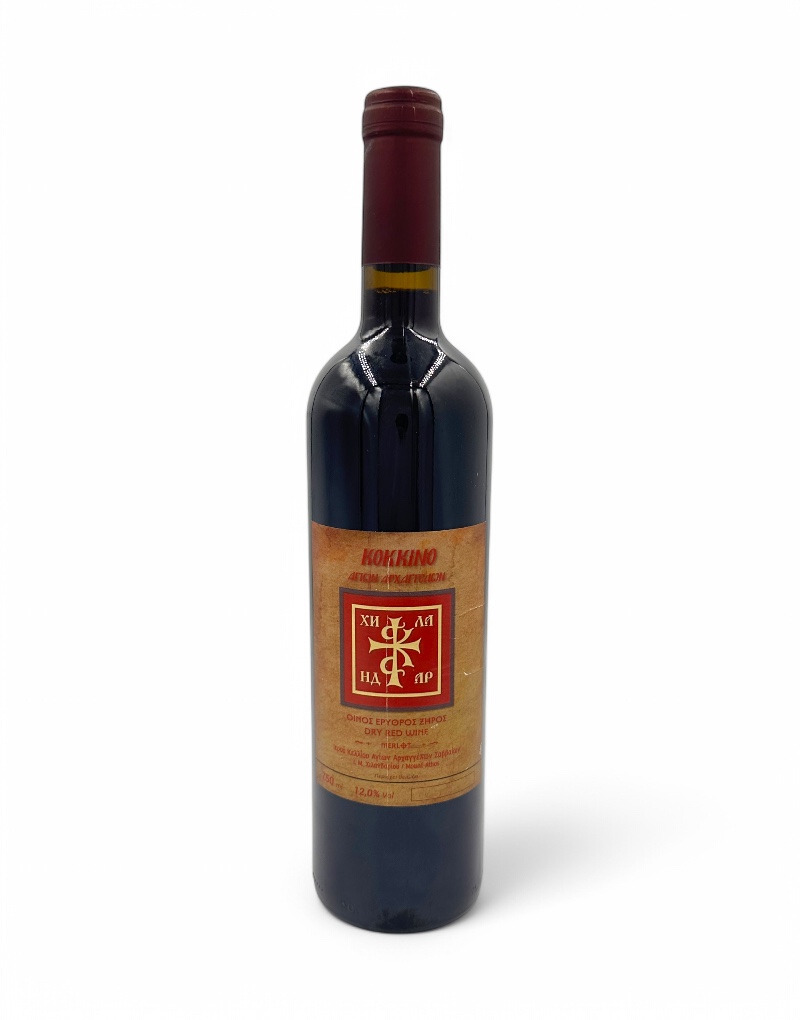 Ένας εκλεκτός ερυθρός οίνος ξηρός, παραγόμενος αποκλειστικά από την ποικιλία Merlot, που καλλιεργείται με φροντίδα στα ευλογημένα αμπέλια του Ιερού Κελιού Αγίων Αρχαγγέλων Σαββαΐων. Τα σταφύλια συλλέγονται προσεκτικά από τους μοναχούς και οινοποιούνται με σεβασμό στην παράδοση του Αγίου Όρους, προσφέροντας ένα κρασί με πλούσιο βάθος και μοναδικό χαρακτήρα.