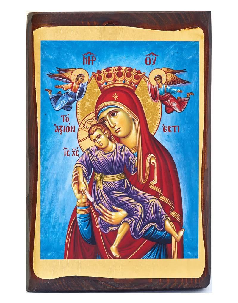 Κωδ: byz00276.Μοναδική ξυλόγλυπτη εικόνα, χειροποίητη και σκαλισμένη με σκαρπέλο. Η εικόνα είναι μεταξοτυπίας εκτυπωμένη πάνω σε επιχρυσωμένο καμβά. Συνοδεύεται στο πίσω μέρος από πιστοποιητικό γνησιότητας σφραγισμένο από βουλοκέρι. Επίσης διαθέτει δερμάτινο σχοινάκι έτσι ώστε να μπορείτε εύκολα να κρεμάσετε την εικόνα και ποδαράκι στήριξης για να την τοποθετήσετε σε οποιαδήποτε επιφάνεια.