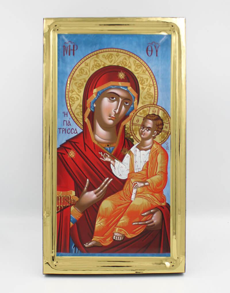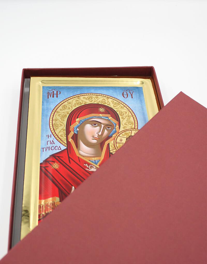 Η Παναγία Γιάτρισσα σε μια μοναδική χειροποίητη ένσκαπτη εικόνα με “εφέ” στιλβωτού.
