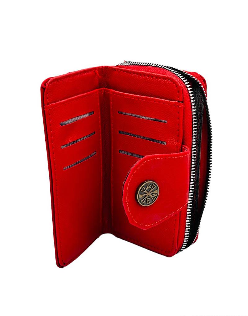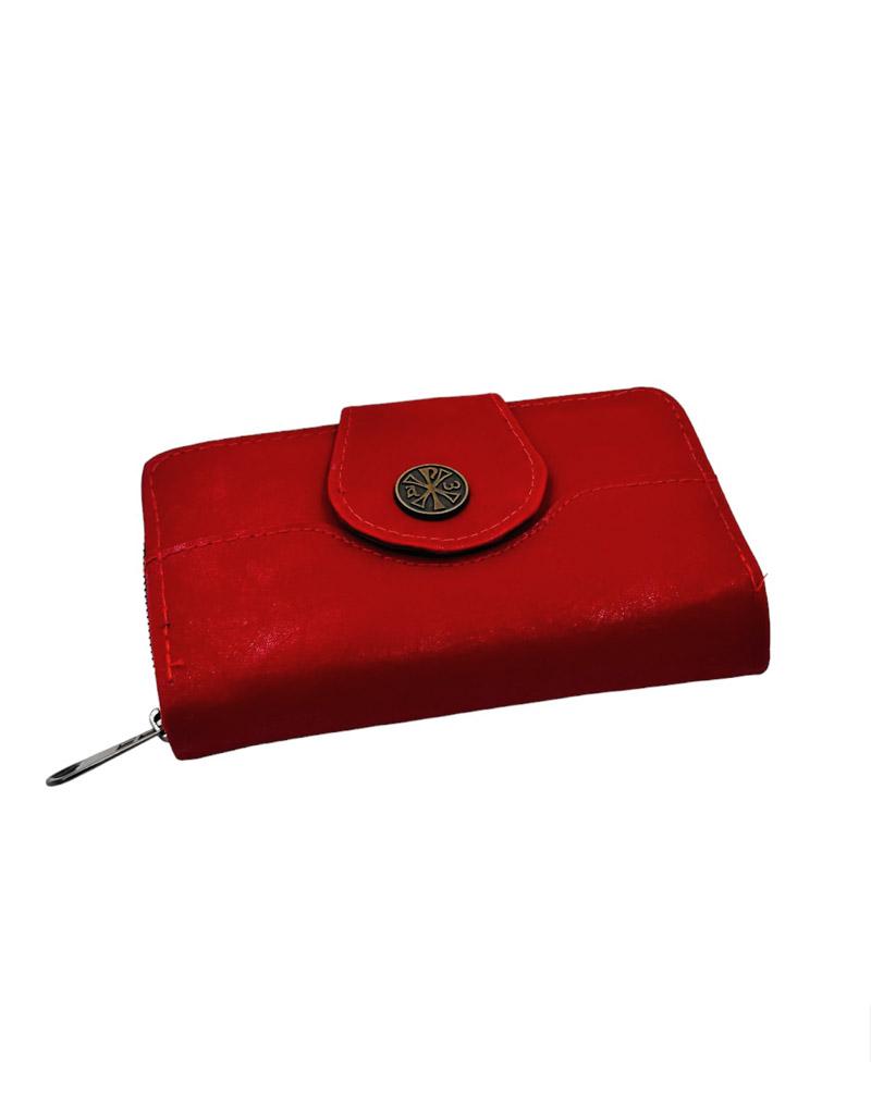 Πορτοφόλι γυναικείο δερμάτινο σε μπορντώ χρώμα με θήκες που θα σας βολέψουν να τακτοποιήσετε με άνεση τα προσωπικά σας αντικείμενα, τις κάρτες σας και τα χρήματα σας. Κατασκευάζεται από δέρμα και στο κέντρο φέρει το σήμα του Ιησού Χριστού.