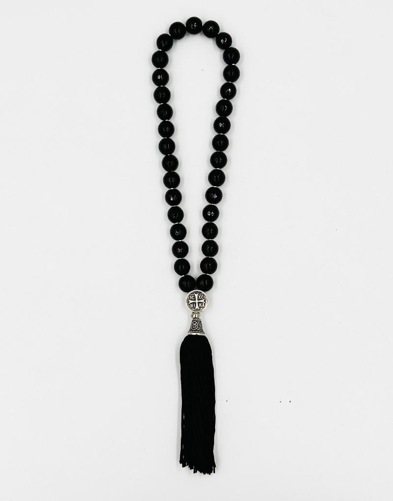 Προσευχητάρι 33άρι από ημιπολύτιμες χάντρες Αχάτη σε μαύρο χρώμα.