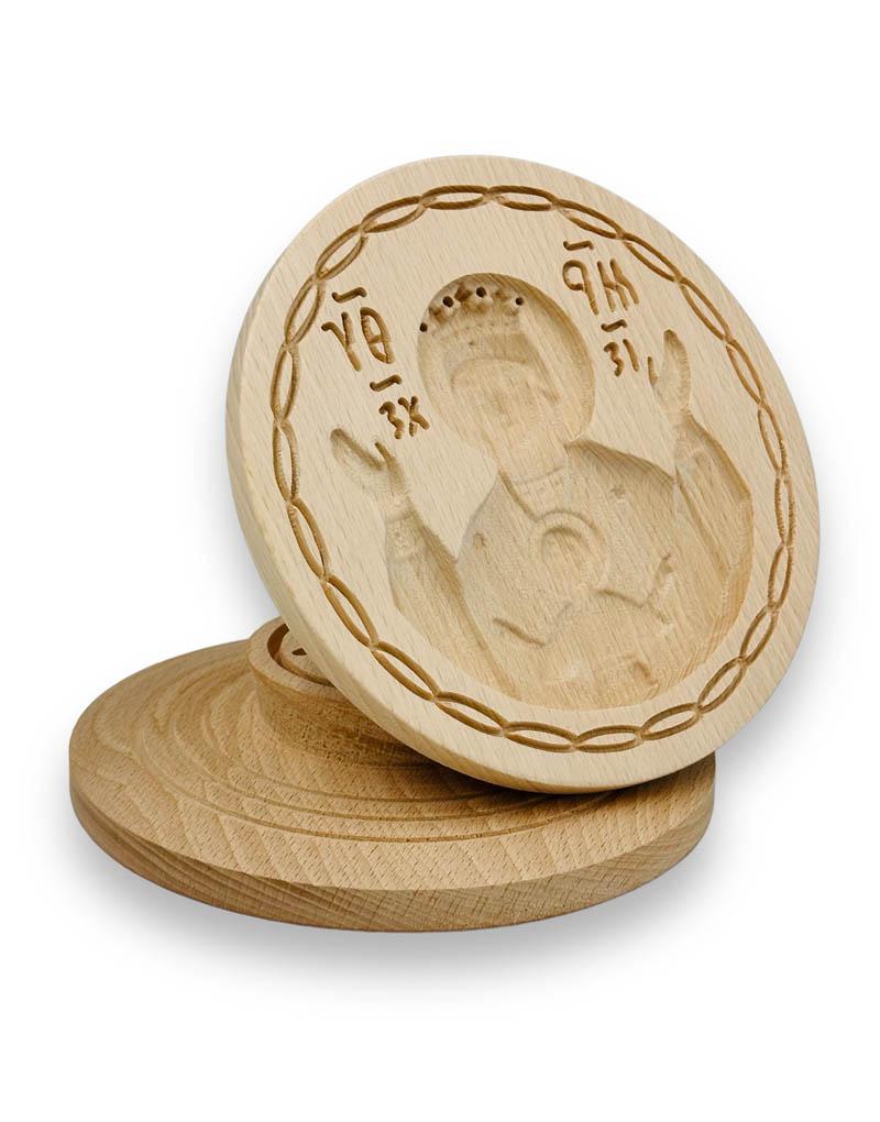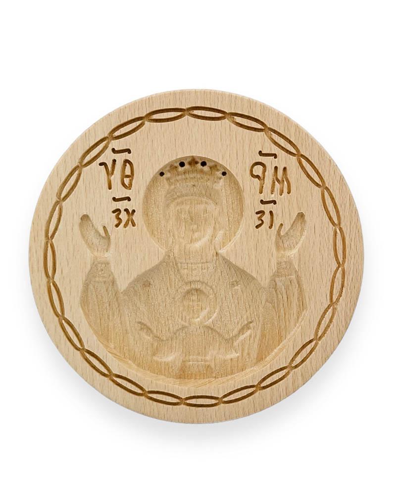 Σφραγίδα προσφόρου με την Παναγία Πλατυτέρα από φυσικό ξύλο οξιάς με διάμετρο 16,5 εκατοστά. Η σφραγίδα είναι εξαιρετικής ποιότητας και με βαθύ σκάλισμα, αποτέλεσμα του οποίου είναι να αποτυπώνεται άψογα το σχέδιο πάνω στο πρόσφορο. Στο πίσω μέρος διαθέτει λαβή επίσης με βαθύ σκάλισμα με το ICXC NIKA.