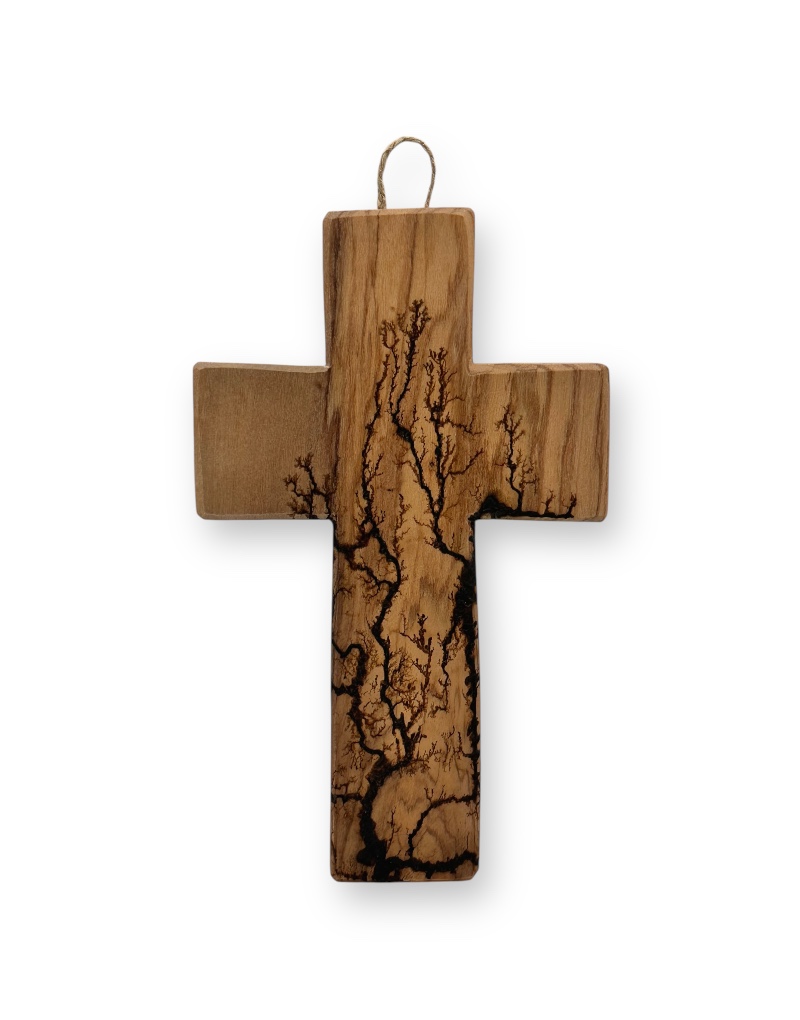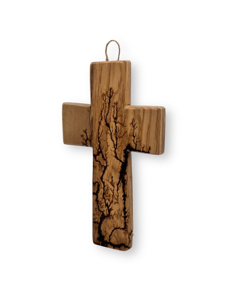 Σταυρός από Ξύλο Ελιάς με Πυρογραφία Ηλεκτρισμού 9*15cm