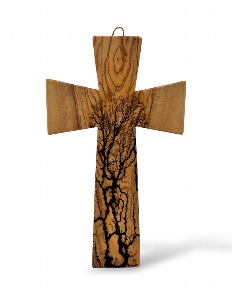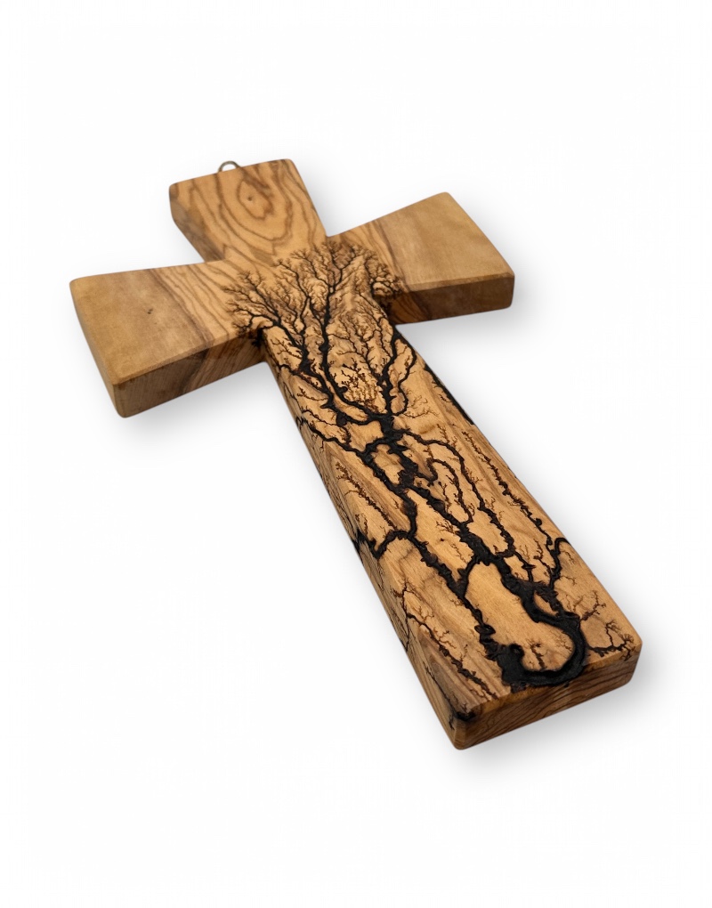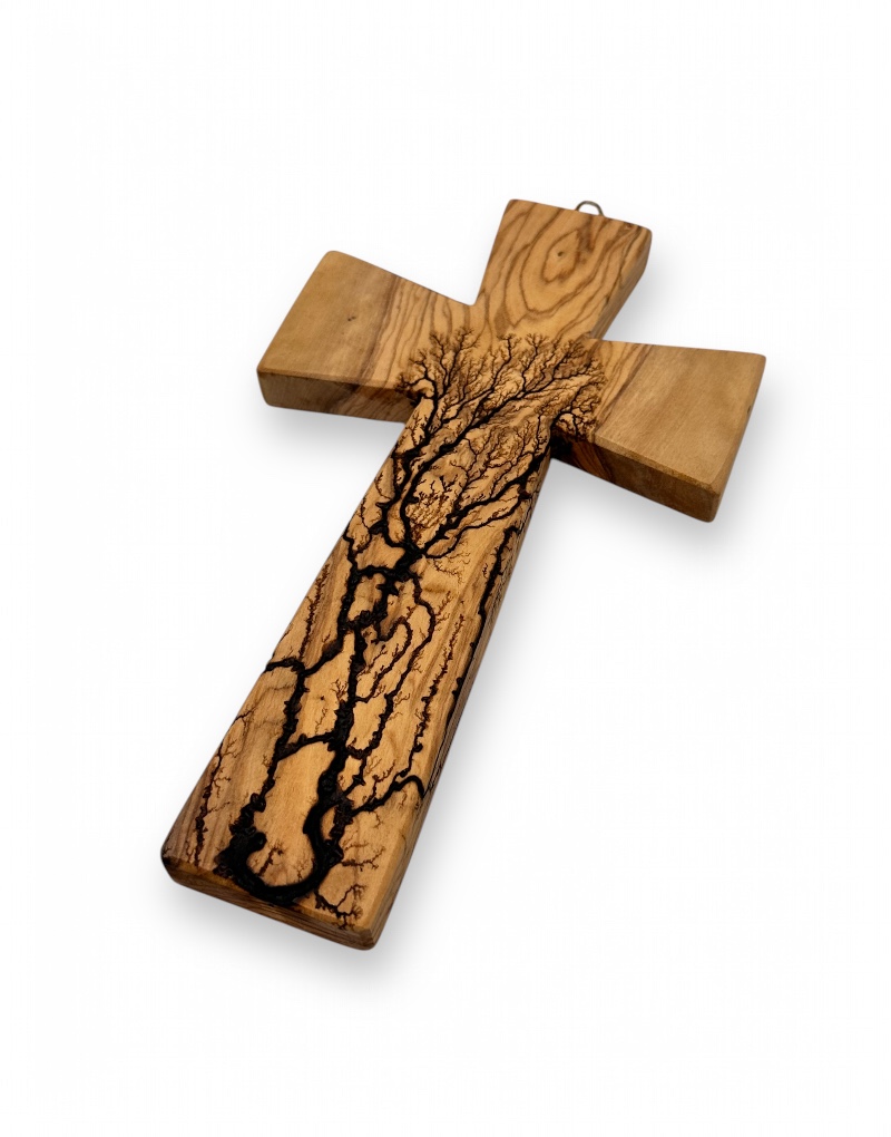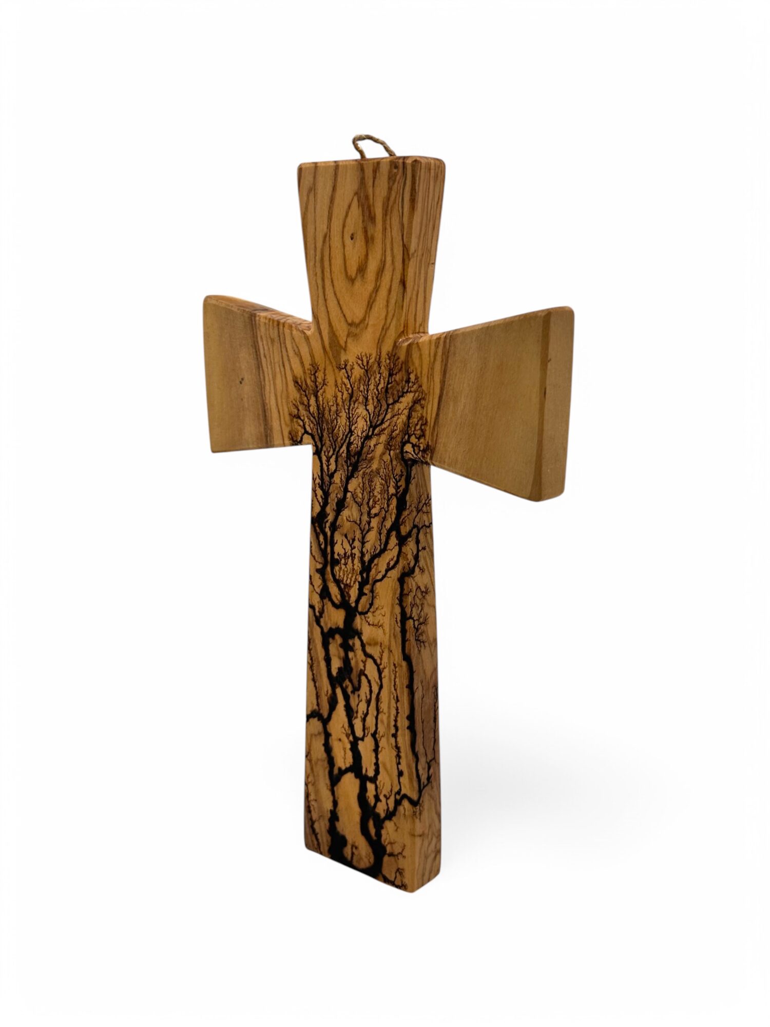Σταυρός από Ξύλο Ελιάς με Πυρογραφία Ηλεκτρισμού 13.5*23.5cm