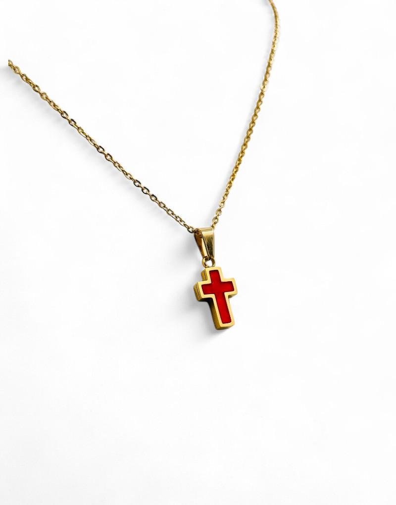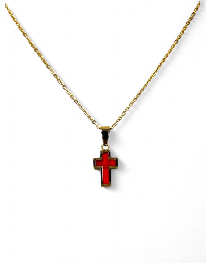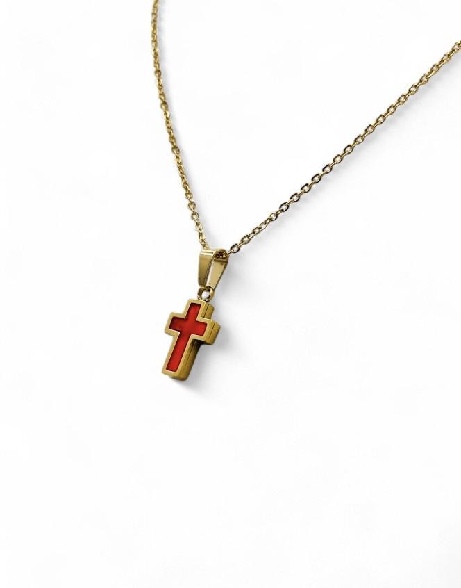 Σταυρός Λαιμού Ατσάλινος χρυσός με κόκκινο μοτίφ