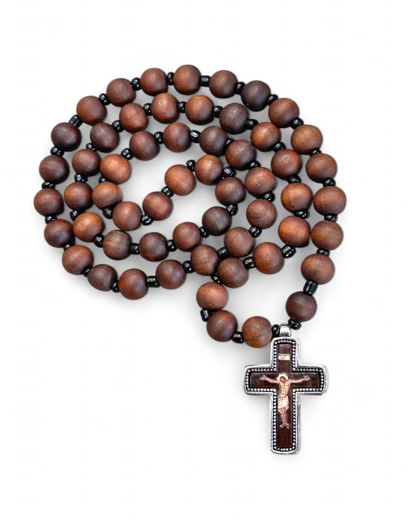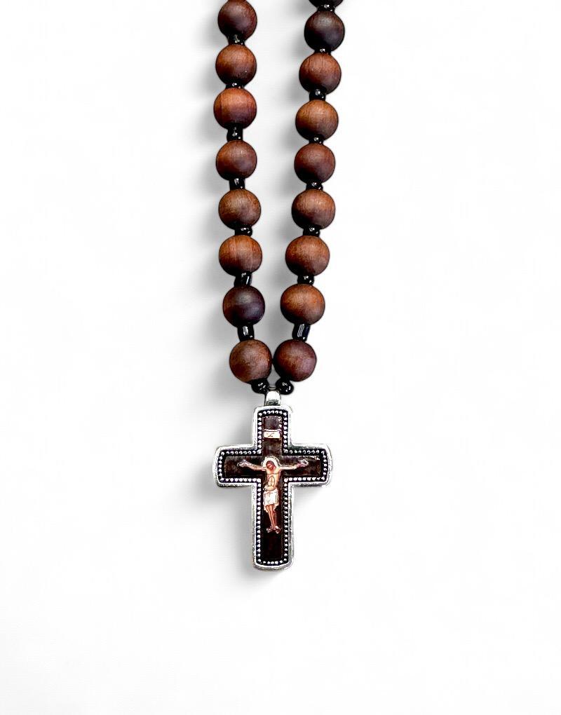-Ξύλινος Αγιορείτικος Σταυρός Λαιμού με στρογγυλές χάντρες, σχεδιασμένος με ιδιαίτερη φροντίδα και αισθητική.