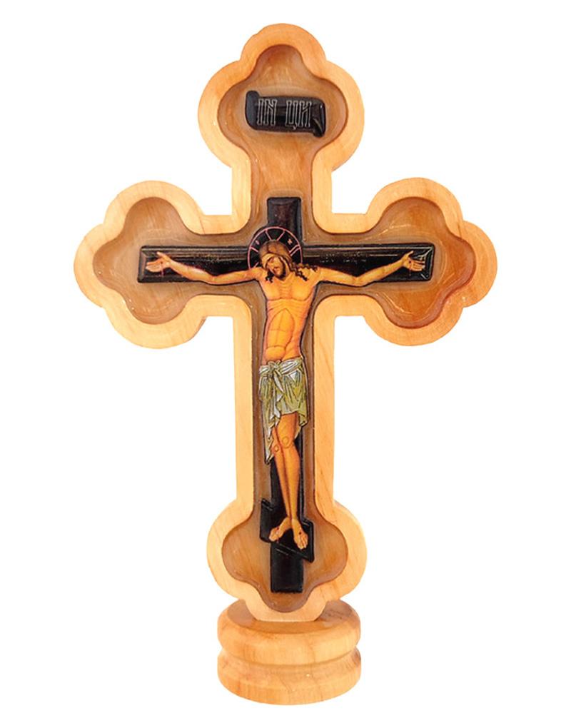 Σταυρός επιτραπέζιος ξύλινος με υγρό γυαλί – 25*17cm