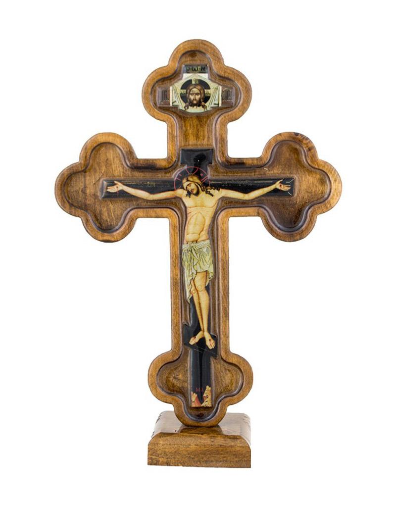 Σταυρός επιτραπέζιος ξύλινος με υγρό γυαλί  στην μπροστινή όψη.