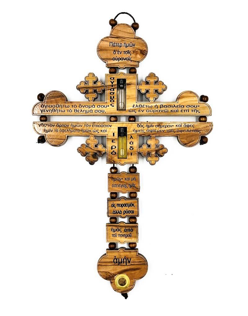 Σταυρός Ιεροσολύμων από ξύλο ελιάς με το “Πάτερ ημών”- 19*30 cm