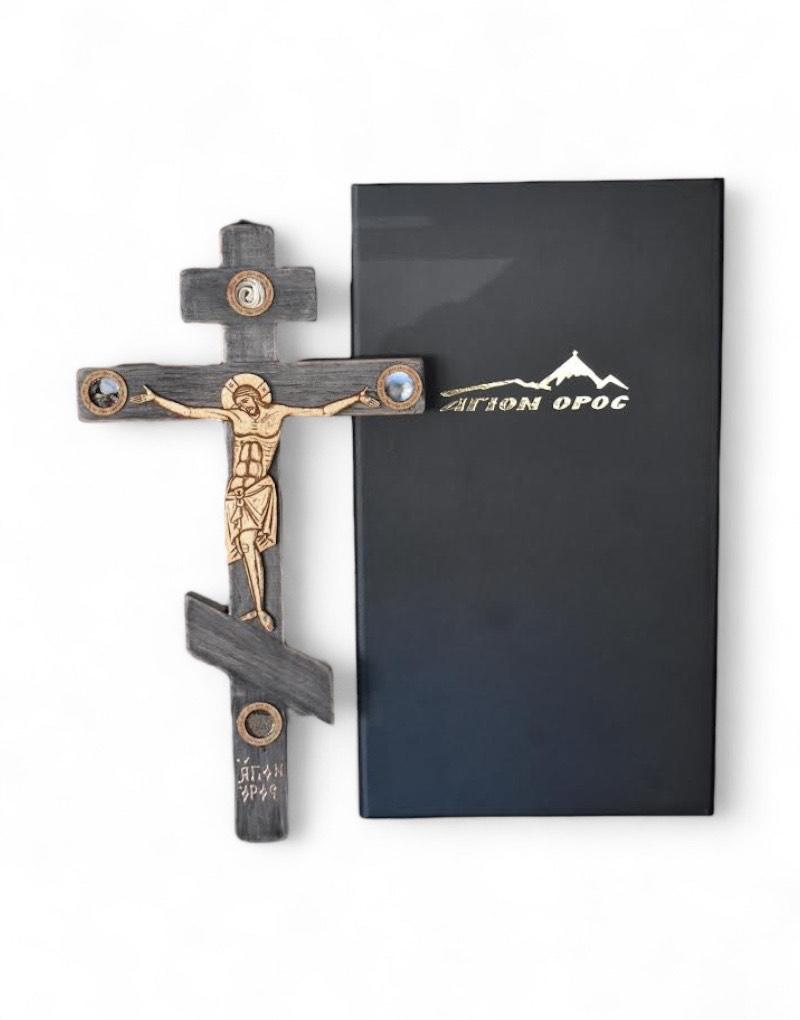 Φέρε στο σπίτι σου την αυθεντική παράδοση του Αγίου Όρους, με έναν σταυρό φτιαγμένο με ιδιαίτερη φροντίδα από αγιορείτικη καστανιά και την ευλογία πατέρων από τον ιερό αυτό τόπο. Θα ανακαλύψεις πάνω του μοναδικά ιερά στοιχεία που φέρουν πνευματική δύναμη: