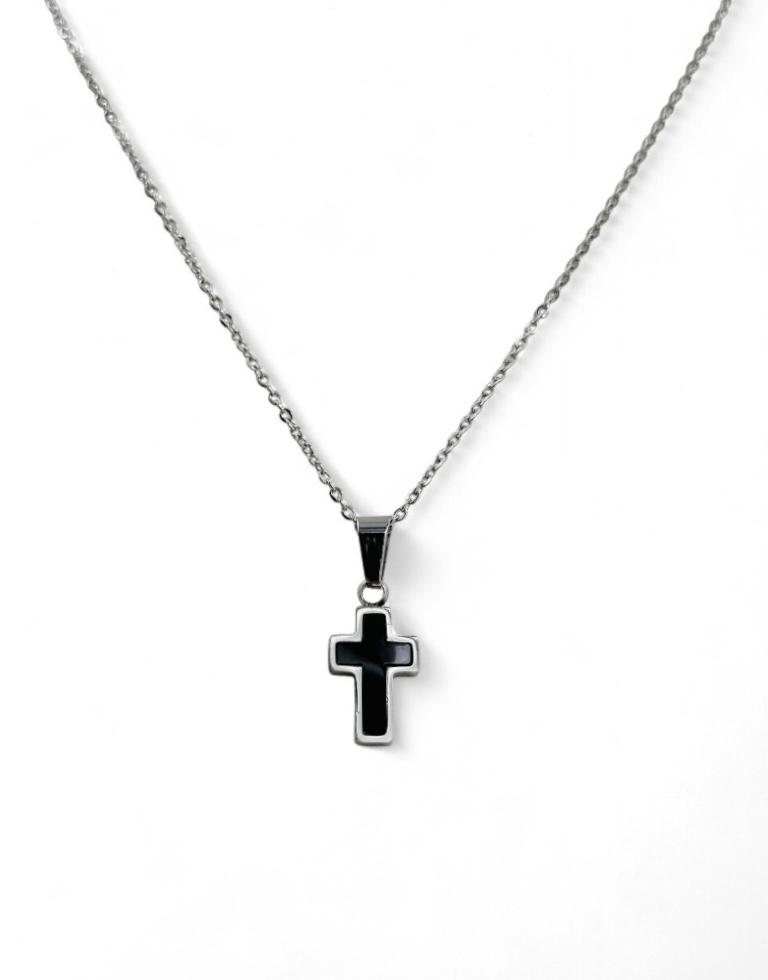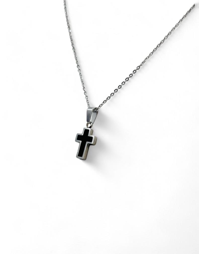 Σταυρός Λαιμού Ατσάλινος με μαύρο μοτίφ