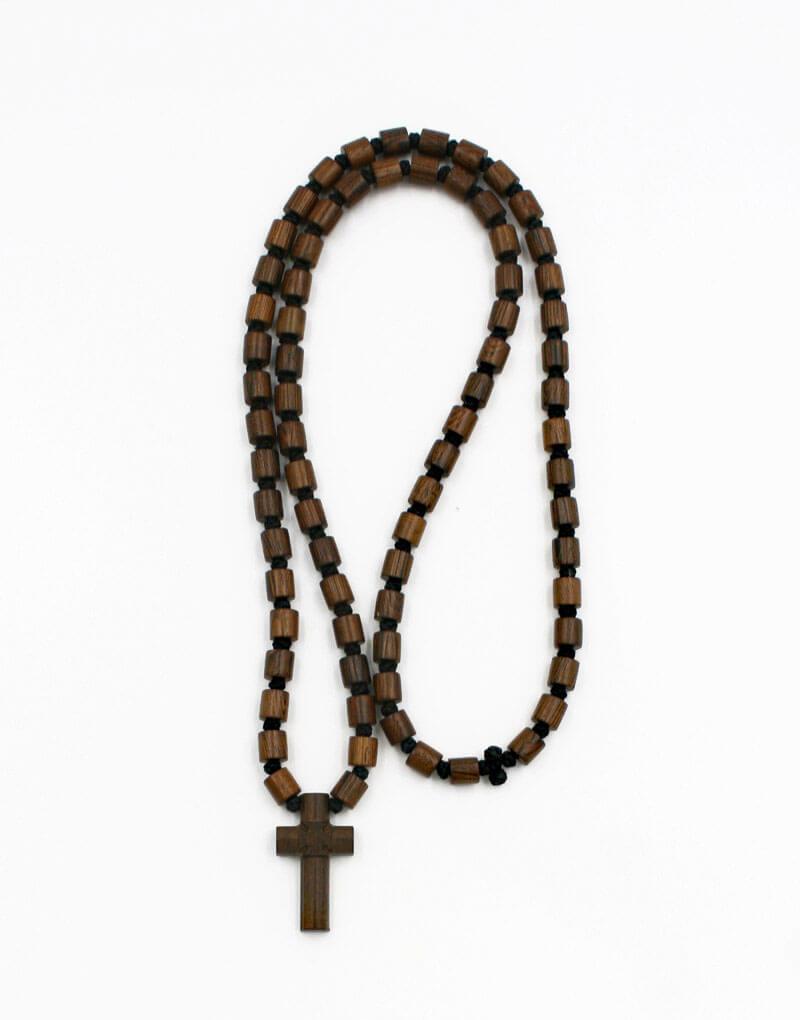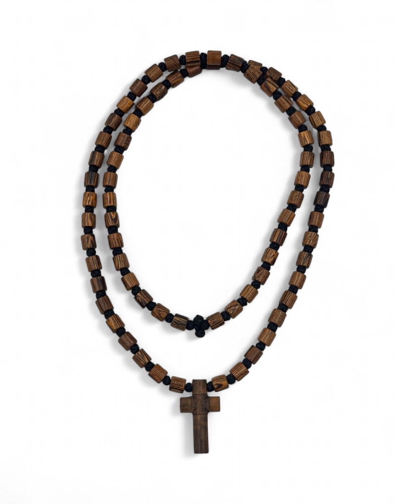 Σταυρός Λαιμού Ξύλινος με Ξύλινες Χάντρες και Κόμπους από Κηροκλωστή – Αγιορείτικο Εργόχειρο