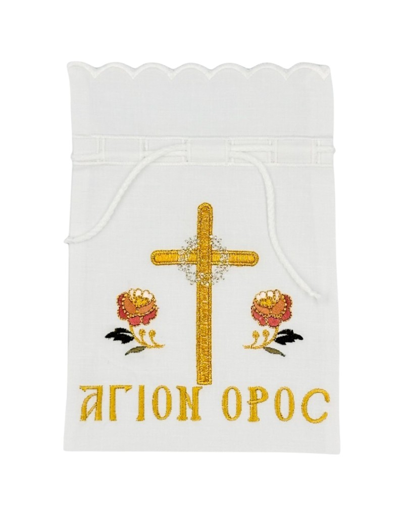 Θήκη Αντίδωρου Βαμβακερή – Κεντημένη με Χρυσό Σταυρό & Λουλούδια