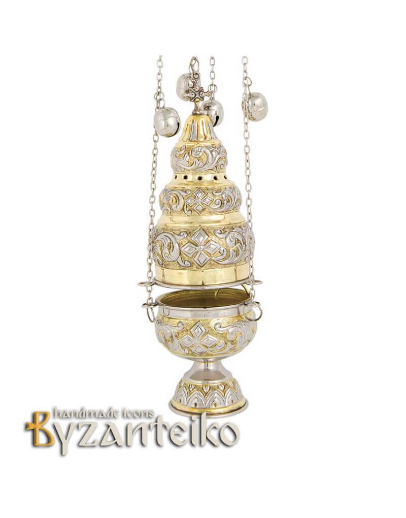 Σκαλιστό δίχρωμο (μπρούτζινο-νίκελ) ιερατικό θυμιατό.