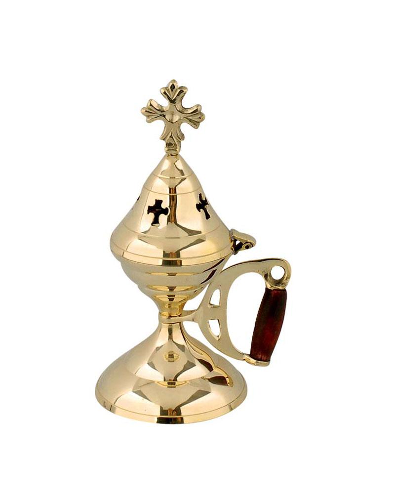 Επιτραπέζιο μπρούτζινο θυμιατό οικίας, εγχάρακτο με ξύλινη λαβή για να μην καίγεστε.